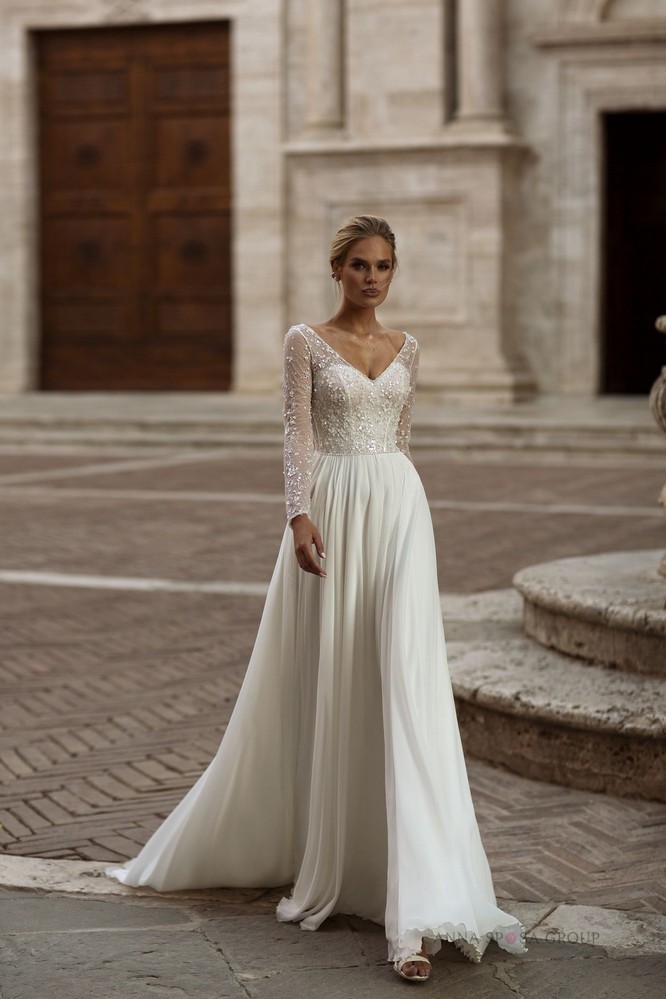 !!! Prodej skončil !!! Podívejte se na naši nabídku.Nápadné lemování živůtku a pasu je to, co dělá svatební šaty Wynona originálními. Ovšem perly, krystaly a romantická krajka dokreslují celek, od kterého nebudete chtít otrhnout zrak. Ke koupi v našem svatebním salonu.