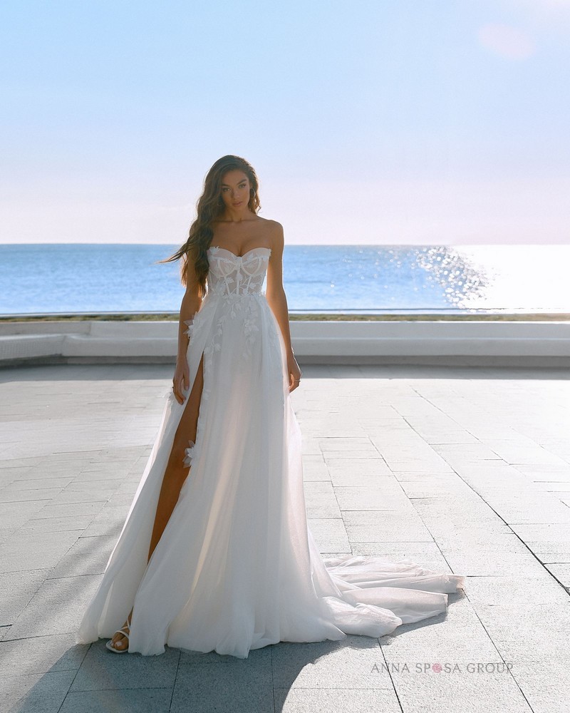 - šaty dole přechází do vlečky, kterou je možné připnout