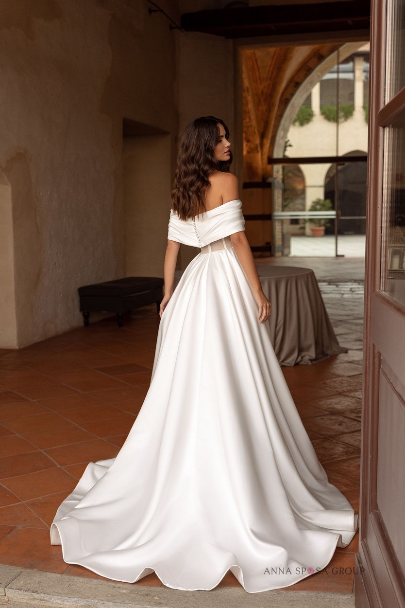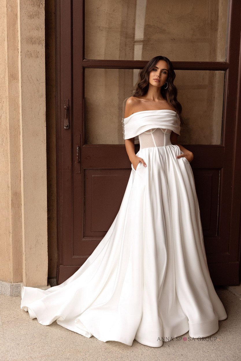 - šaty dole přechází do vlečky, kterou je možné připnout